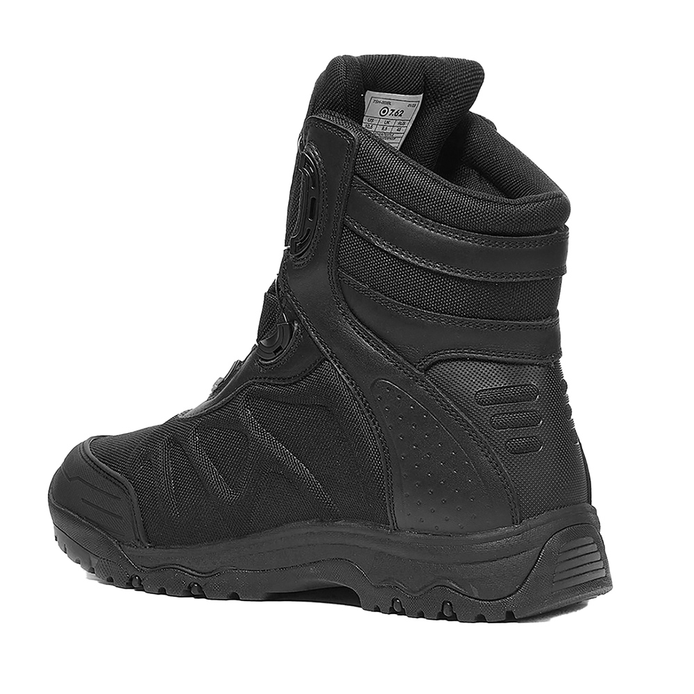 Система антишок в каблуке позволяет прыгать с возвышенностей амортизируя нагрузку на пятку при приземлении. Боковая защита делает эксплуатацию данной обуви еще более безопасной и комфортной. Система быстрой шнуровки FitGo® позволяет надевать и снимать обувь более оперативно.