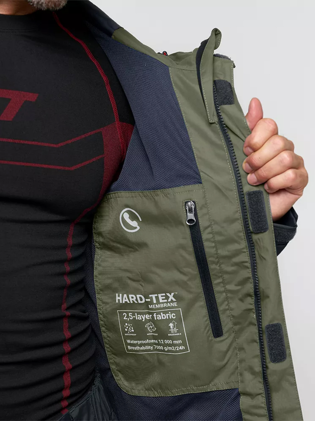 - Мембрана Hard-Tex позволяет телу дышать и не пропускает воду внутрь.
