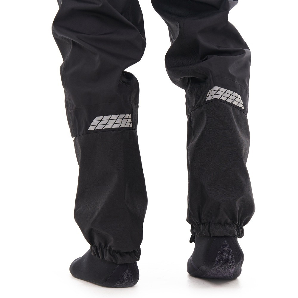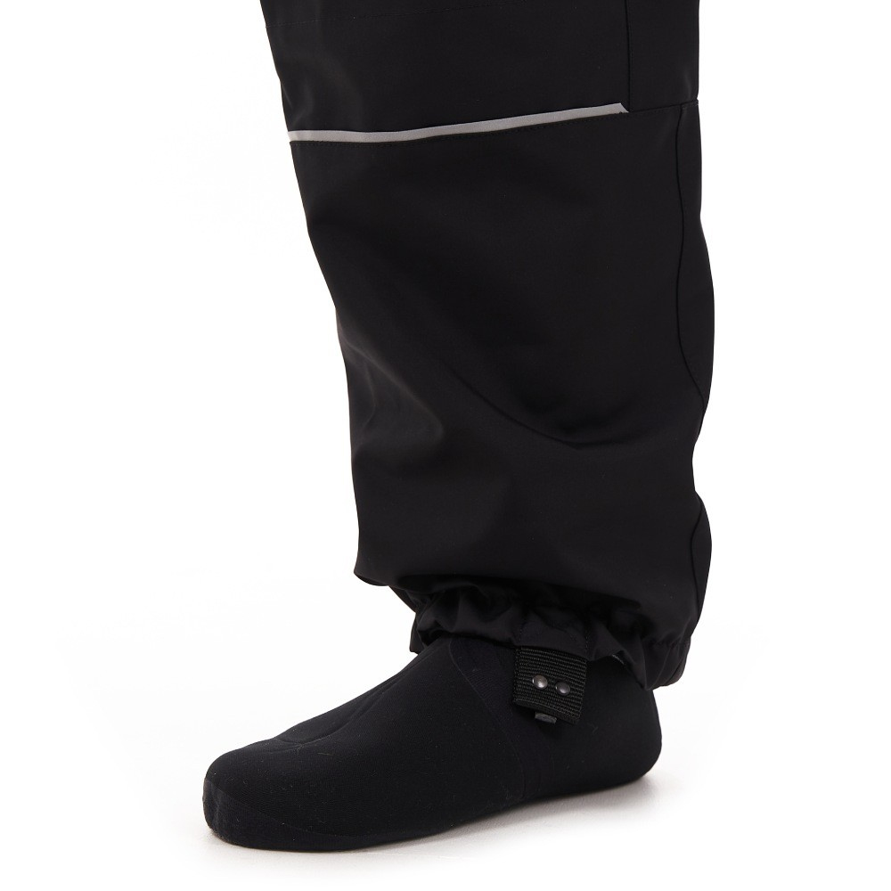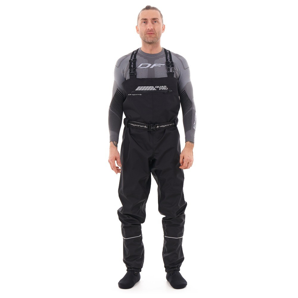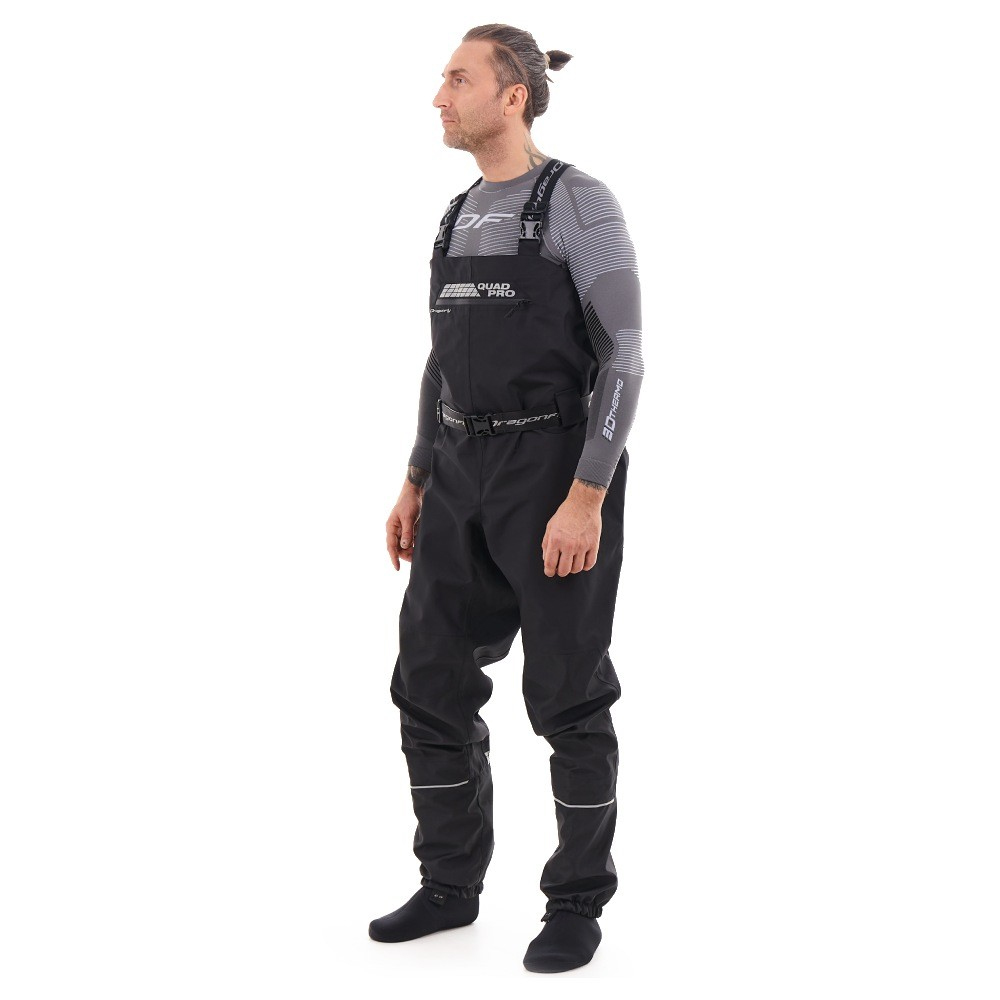 Эргономичный крой учитывает посадку на технику. Можно носить эти квадроштаны как летом, так и весной или осенью, надев теплое термобелье, флисовые шорты или флисовый полукомбинезон. В них комфортно при температуре от +5 до +30 °С. Сшиты из прочной мембранной ткани FINETEX (Южная Корея), которая защищает от воды, ветра, грязи, насекомых. Состав: 100% полиэстер, плотность 195 г/м², показатели мембраны 18000/10000 (вода/пар), влагозащитное покрытие H/Dewspo. Благодаря мембране материал отводит естественную влагу от тела. Все швы изделия проклеены, что гарантирует его герметичность. Носки вейдерсов сделаны из премиального неопрена SEAMATE толщиной 5 мм с кевларовой нитью на подошве; их швы склеены, прошиты слепым швом и герметизированы изнутри лентой. Анатомический крой носков позволяет выбрать любую обувь и чувствовать себя в ней комфортно. Функциональные характеристики: 100% непромокаемые: проклейка швов 3-х слойной лентой